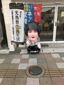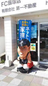 新飯塚駅前の第一不動産のブンブン人形が、アロハシャツ姿から