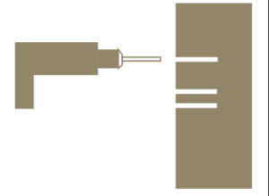 ②しるしをつけた部分を刃先径6.4ミリの コンクリート用のハンマードリルで穴をあける。(穴は深めに) |